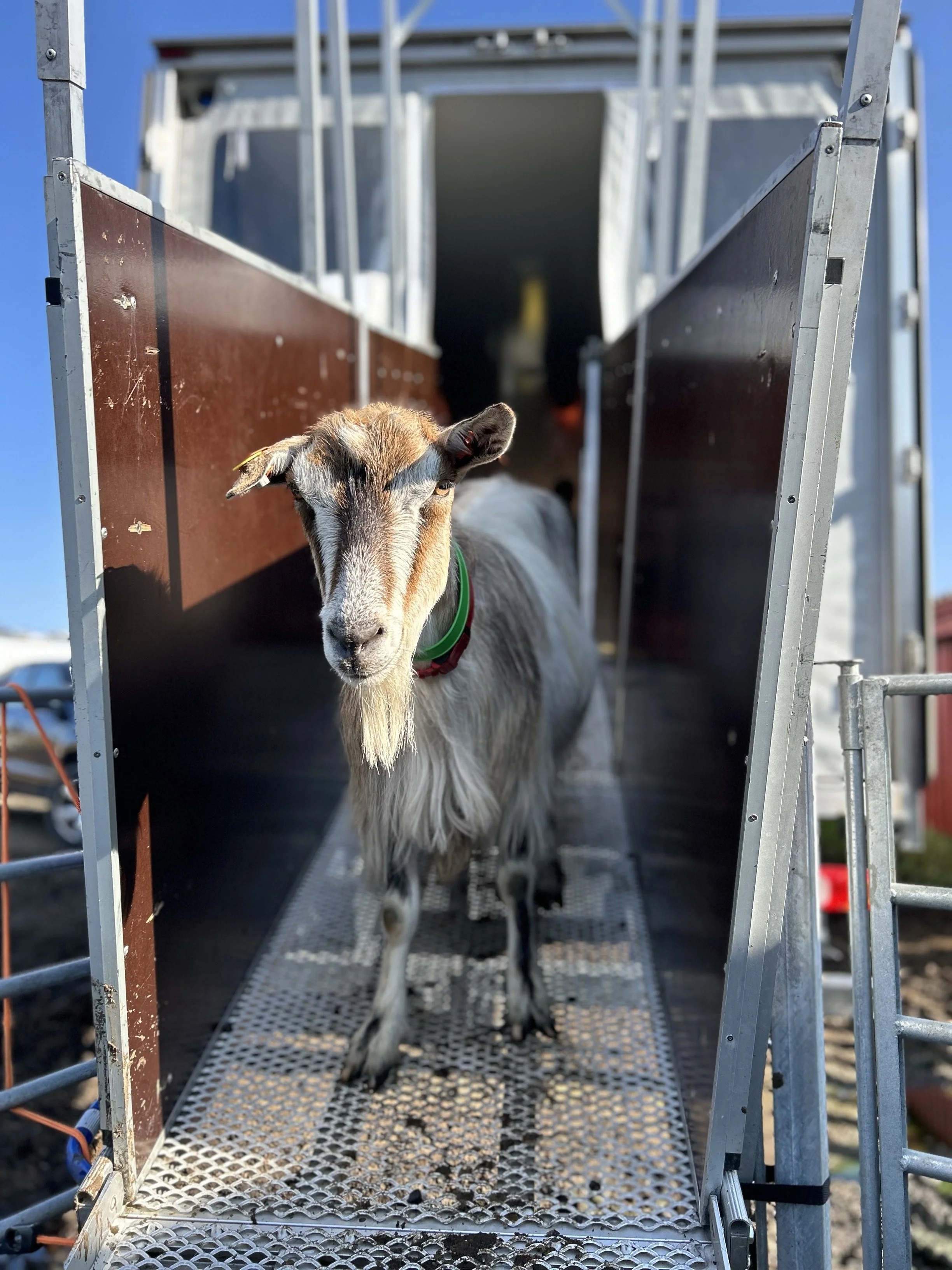 Hver geit er inne i metanmåleren i 50 minutter, før de slippes ut igjen i fjøset eller på beite